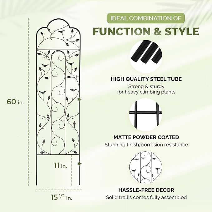 - BUILT FOR LONG LASTING BEAUTY: The high quality steel trellis for climbing plants with outstanding strength and durability provides solid support for climbing plants; Its powder coating protects it from rust and corrosion, ideal for outdoor use