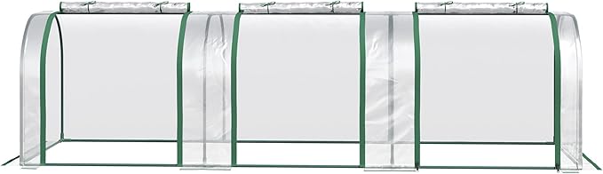 Outsunny 10' x 3' x 2.5' Mini Greenhouse, Portable Tunnel Green House with Roll-Up Zippered Doors, UV Waterproof Cover, Steel Frame, Clear