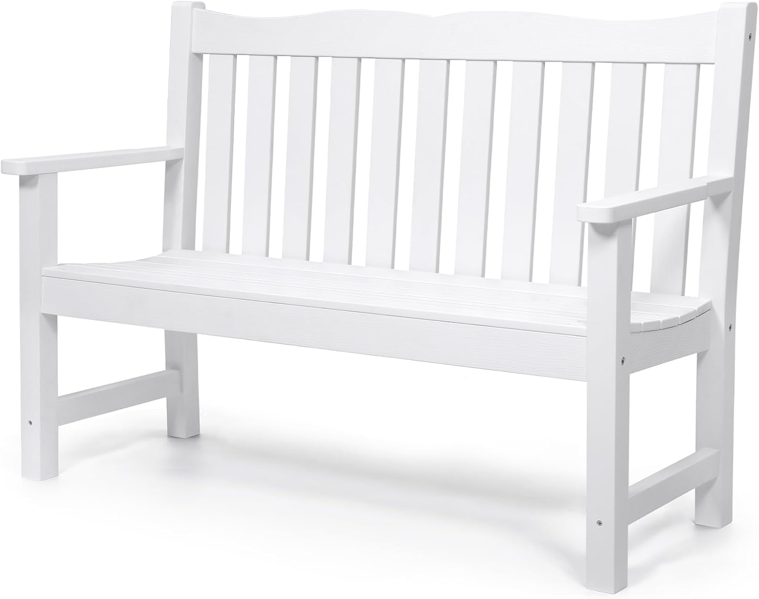 Stoog Garden Bench, 2-Person White Outdoor Bench, All-Weather HIPS Patio Bench with 800 lbs Weight Capacity, Never Rot or Fade, for Garden, Porch, Backyard and Park, White