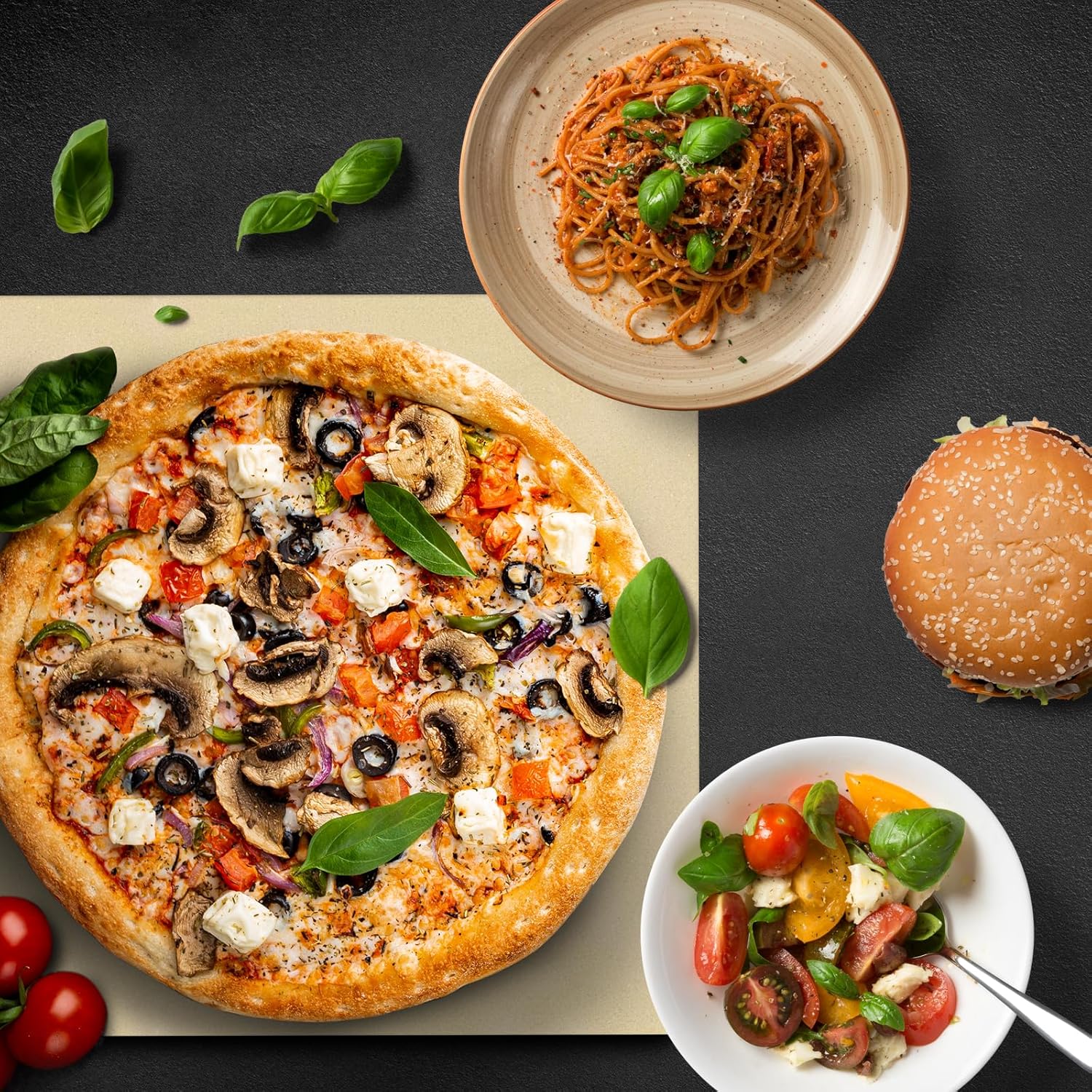 - Food Grade Materials: Pizza Baking Stone is made of ceramic. It will not be damaged even at 1400 β. Excellent craftsmanship provides excellent strength, durability, heat preservation, and thermal shock resistance, making it a artwork. Long service life. For family and friends, and nobody can refuse it