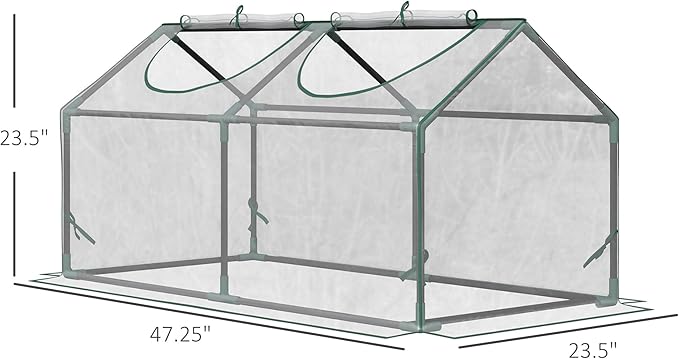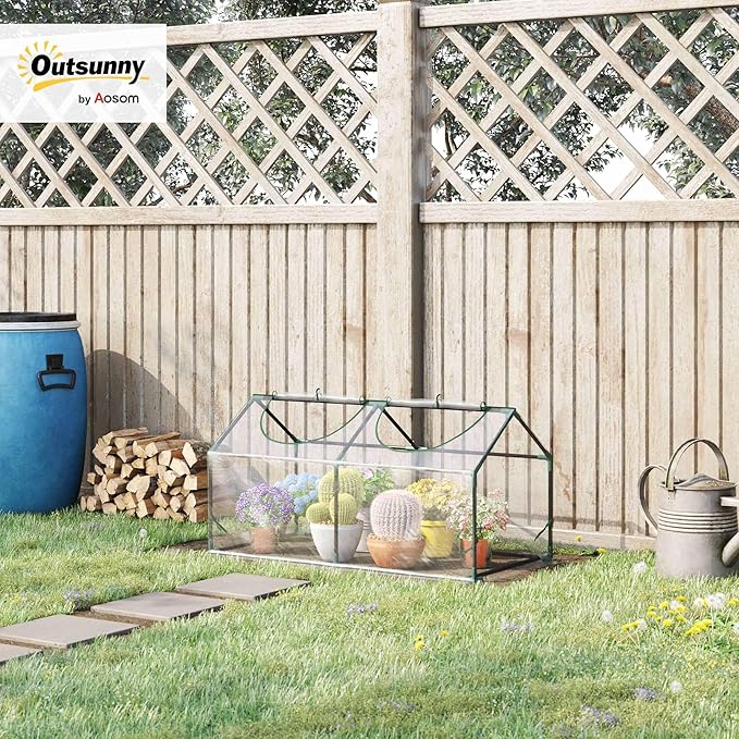 Outsunny 4' x 2' x 2' Portable Mini Greenhouse, Small Green House with PVC Cover, Roll-up Zippered Windows for Indoor, Outdoor Garden, Clear