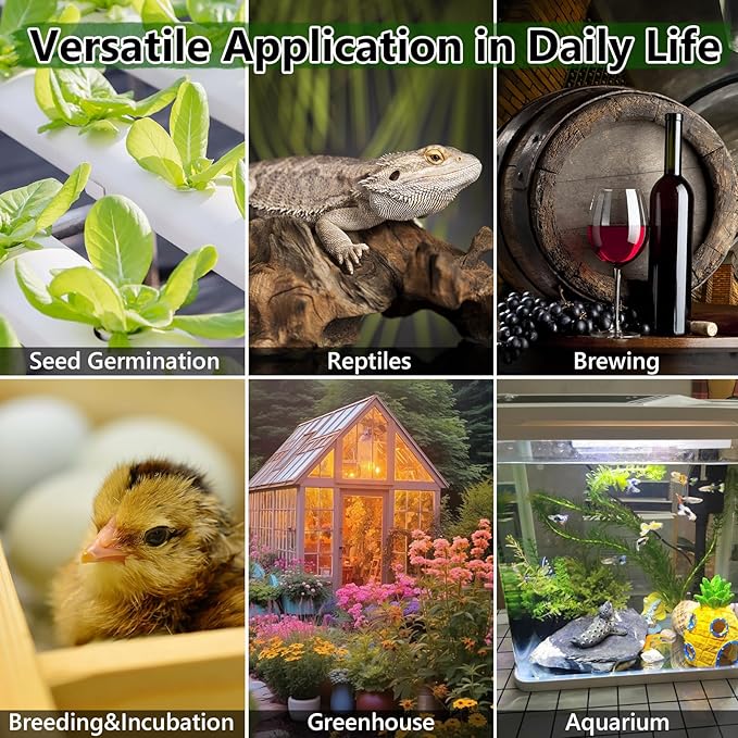 - 【Multi-scene Use】The heating pad can be used for any plant seeds or seedlings that need to be heated in winter, helping your plant seedlings to survive the cold winter smoothly. Not only can it be used for green plants and seeds, but also vegetables, flowers, reptiles, etc. can be helped by the heating mat.but also for home brewing and terrarium warming, meeting your different daily needs.