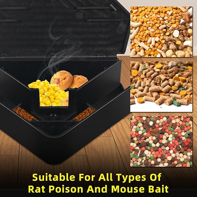 - For Indoor & Outdoor Use: The rodent bait station occupies a small area and can be used in indoor and outdoor places such as kitchens, attics, courtyards, garages, warehouses, etc.
