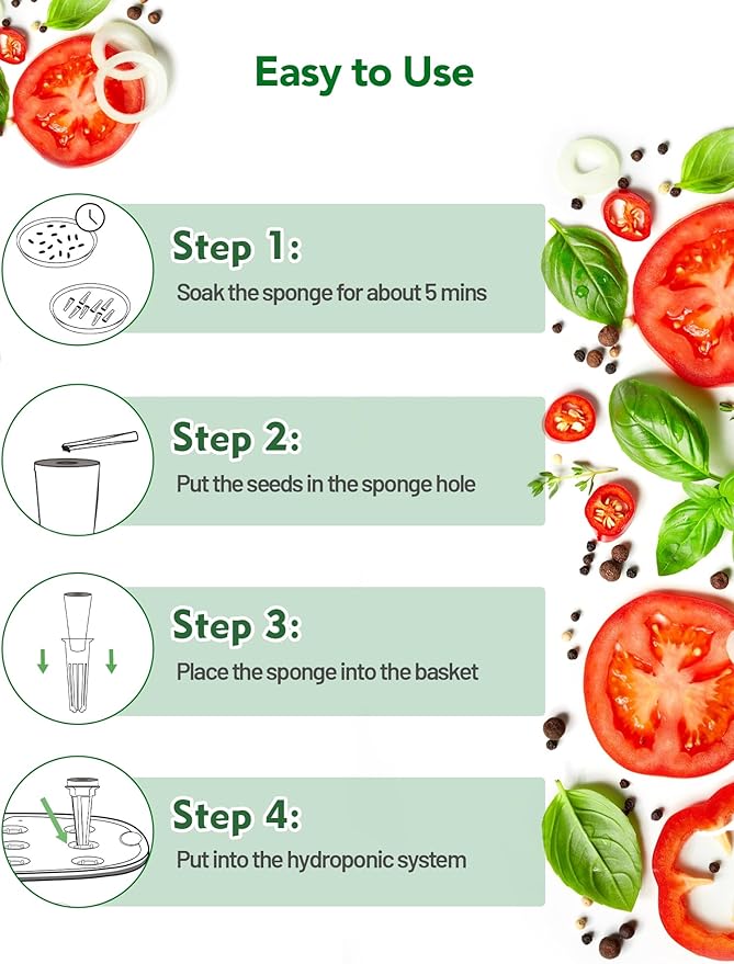 - 【Easy to Use】 Before use, soak the sponge for about 5 minutes and then place the seeds inside. Please store all unused replacement growing sponges in a dry place.