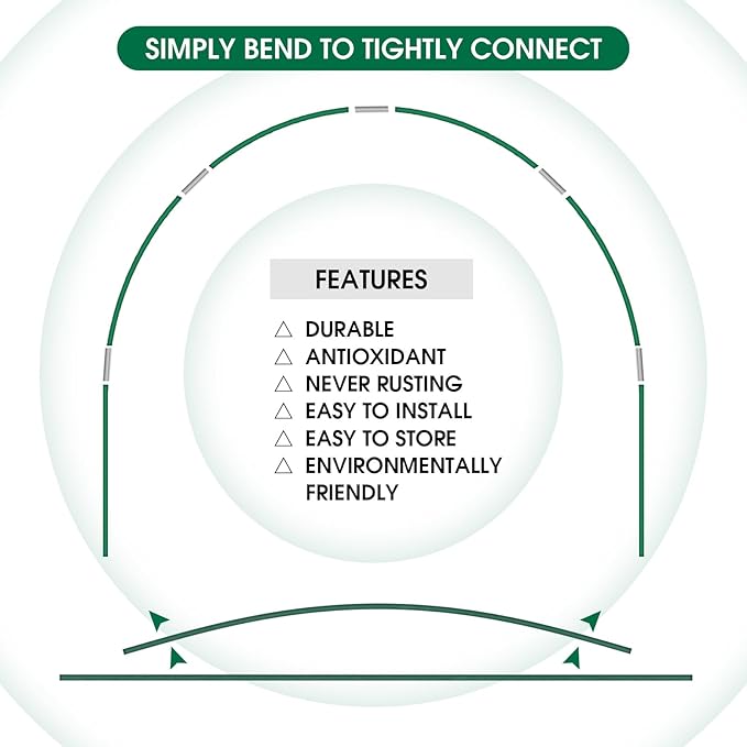 - 【Premium Material】Our greenhouse hoops are made of high quality fiberglass, which offers good flexibility,never rusty, anti-oxidant and can be used for a long time. It will be a great choice for your garden greenhouse.