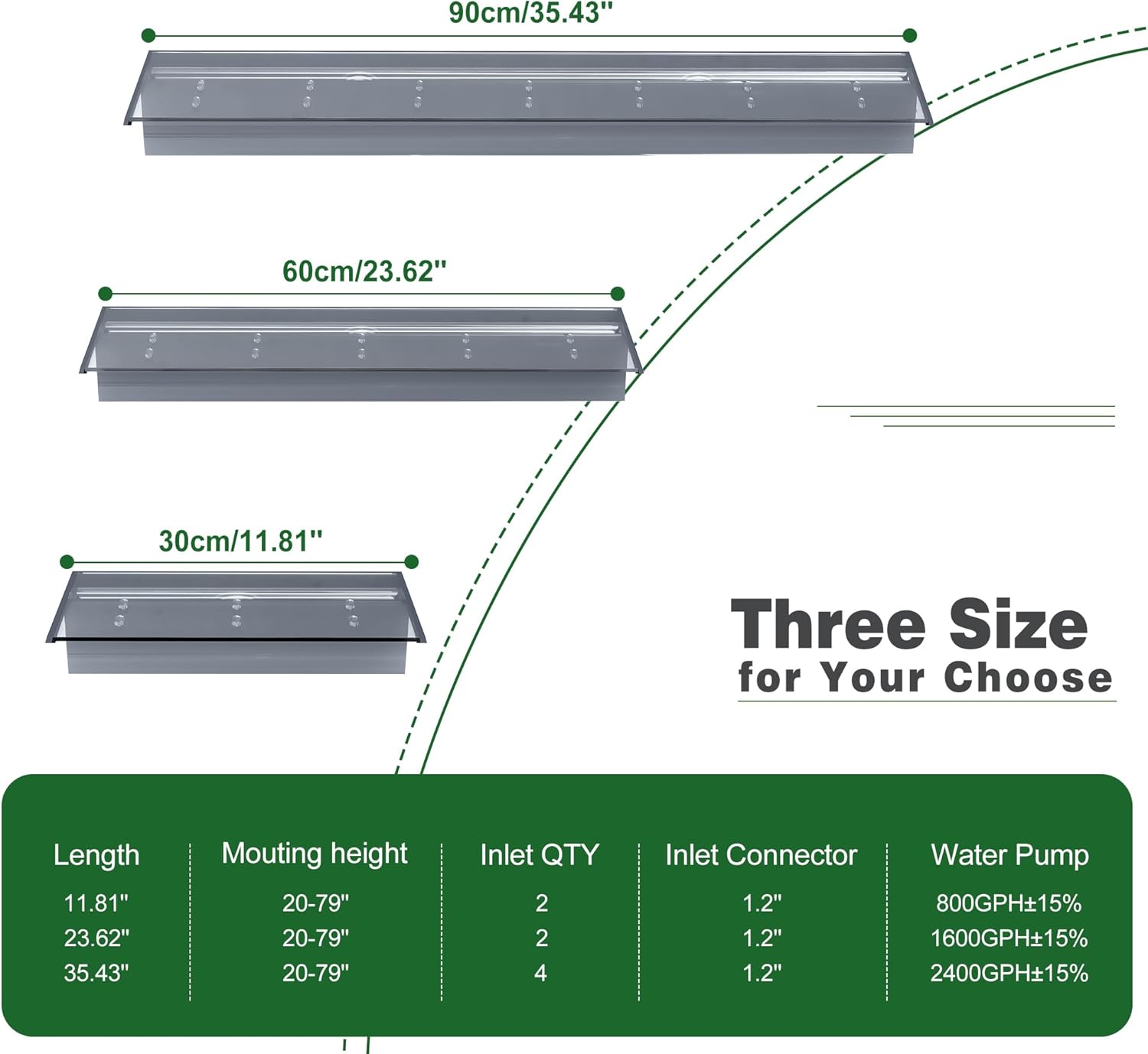 - ăSpillway Waterfallă- The main body of this spillway waterfall is clear acrylic for stable long-term use, featuring an top open lip design that creates elegant, invigorating, freefalling water effects to add a decorative touch to ponds and pools, letting you enjoy the relaxing sounds of water for a sense of calm and well-being. LED light strips not included, but available separately.