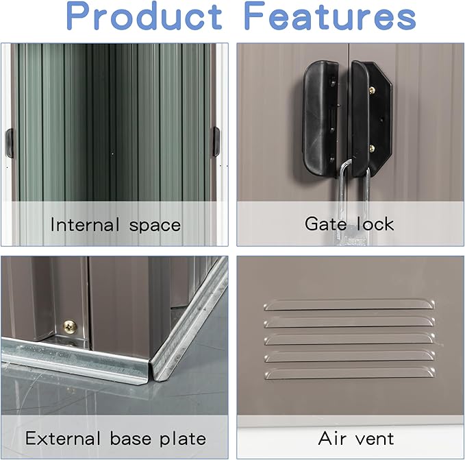 - [All-Weather Shed]: This metal outdoor storage cabinet features a pointed roof for quick drainage, preventing rainwater build-up and tool shed rust. The outdoor backyard storage shed has advanced corrosion resistance and durability. The metal storage shed is UV resistant in the hot sun.