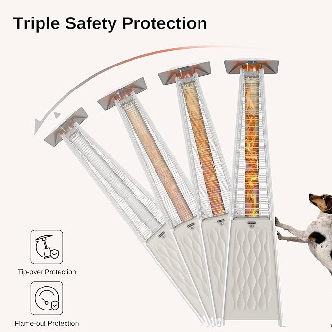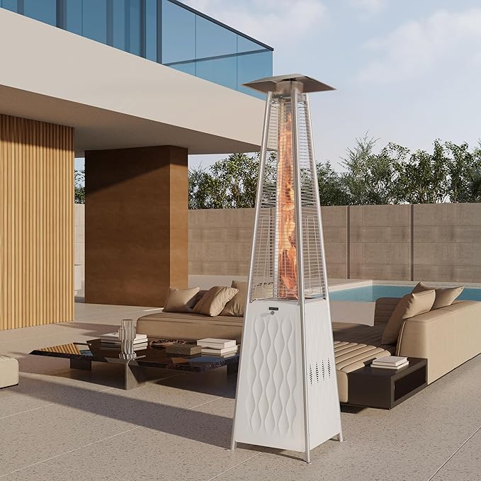 EAST OAK Pyramid Patio Heater, 48,000 BTU Outdoor Patio Heater, Quartz Glass Tube Propane Heater, Triple Protection System, With Wheels, Outdoor Heater for Commercial & Residential, White