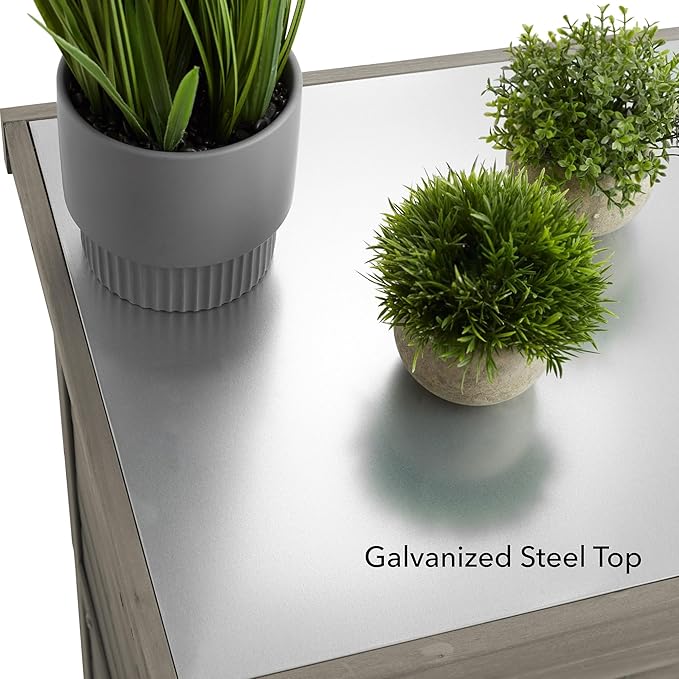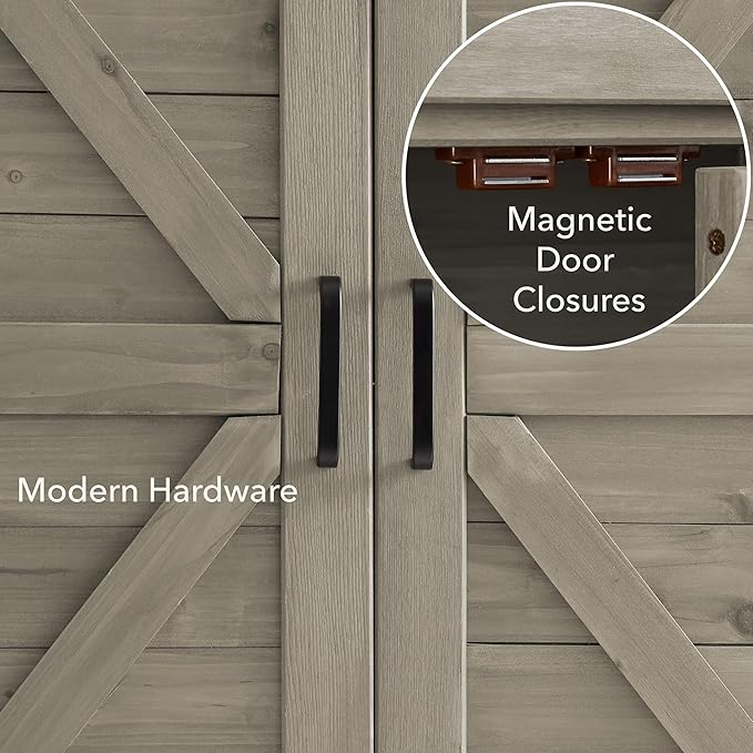 - Durable construction: The wooden garden potting storage cabinet is made from cedar wood. The galvanized metal steel top adds durability and protection against the elements, with resistance to rust and corrosion making it particularly suited for outdoor use. Magnetic door closures and ergonomic door handles provide for easy opening and closing of the cabinet doors.