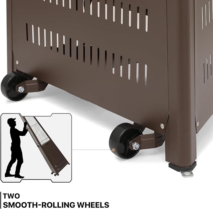 - Effortless Mobility - Designed with your convenience in mind, our patio heater includes two smooth-rolling detachable wheels, allowing you to easily transport and position it anywhere in your backyard or patio.