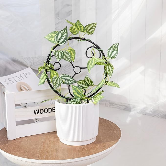2 Pcs Small Indoor Metal Garden Plant Trellis for Climbing House Pot Plants, Black (Style F)