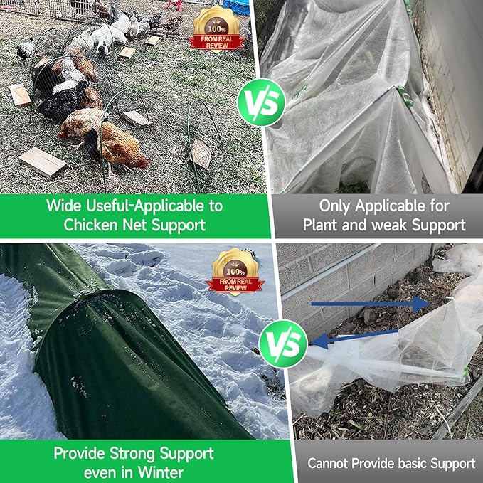 FOTMISHU Garden Hoops, 10PCS Greenhouse Hoops Rust-Free Grow Tunnel, All-in-one 23.6" x 25.6" Garden Stakes with Plastic Coated Plant Supports for Raised Beds Row Cover Garden Fabric