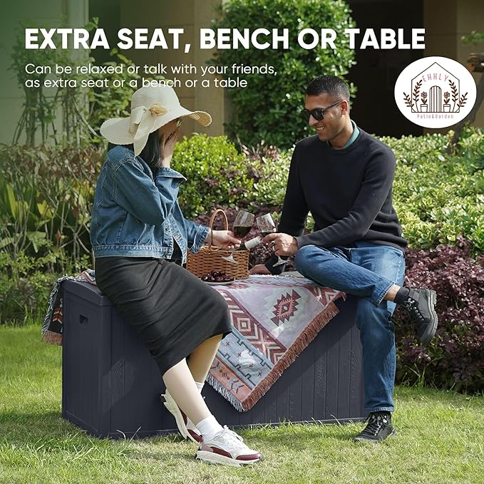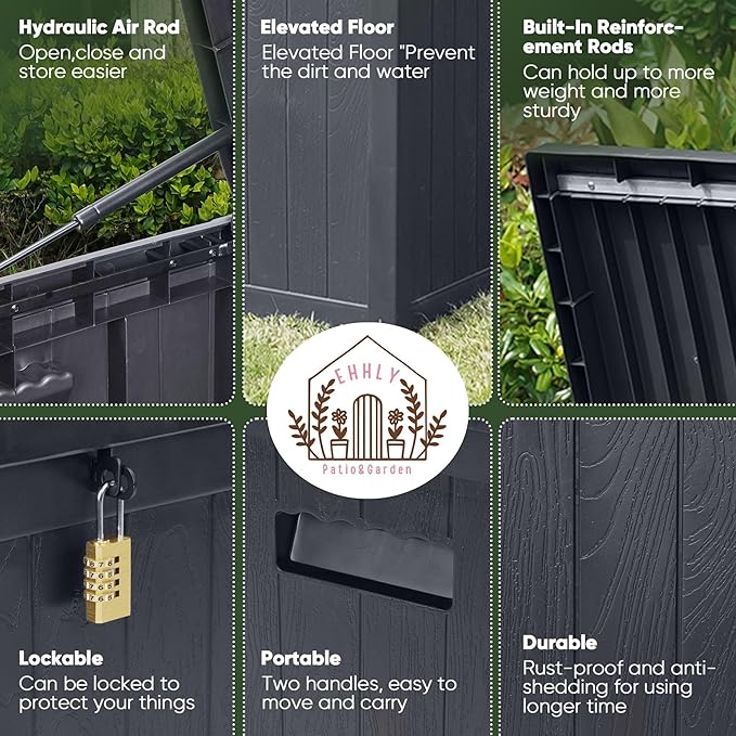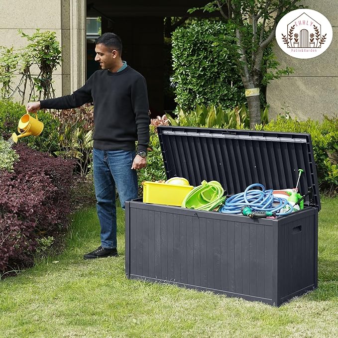 - Wood-Style Design: Our deck box combines the appeal of wood with the durability of resin, providing an elegant and long-lasting storage solution for your outdoor space.