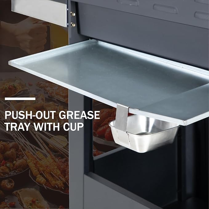 - ๐๐๐ฌ๐ฒ ๐ญ๐จ ๐๐ฅ๐๐๐ง: The full-size grease tray slides out smoothly, making it a breeze to deal with grease and drippings while you're grilling. Plus, the handy cup lets you easily get rid of the collected grease, keeping the post-grill cleanup hassle-free. This design also ensures your food tastes its best by preventing excessive grease from affecting the
