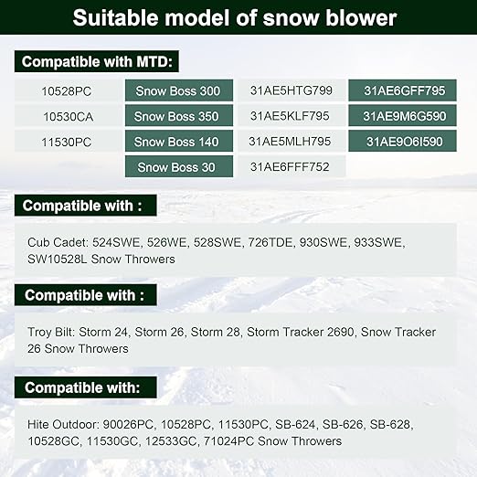 - ๐๐จ๐ฆ๐ฉ๐๐ญ๐ข๐๐ฅ๐ ๐ฐ๐ข๐ญ๐ก:Many MTD ,Ryobi,Yard Man, Cub Cadet,Troy Bilt ,Craftsman Snowblower and Snow Thrower