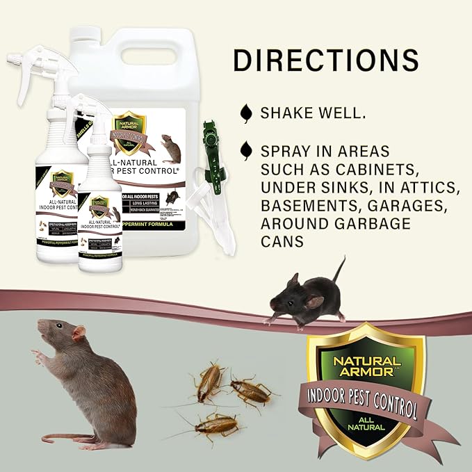 Peppermint Repellent for Indoor Pest Control - All Natural & Safe Spray for Outdoor Use. Natural Armor Indoor Pest Control. 128 Oz Gallon, Refill