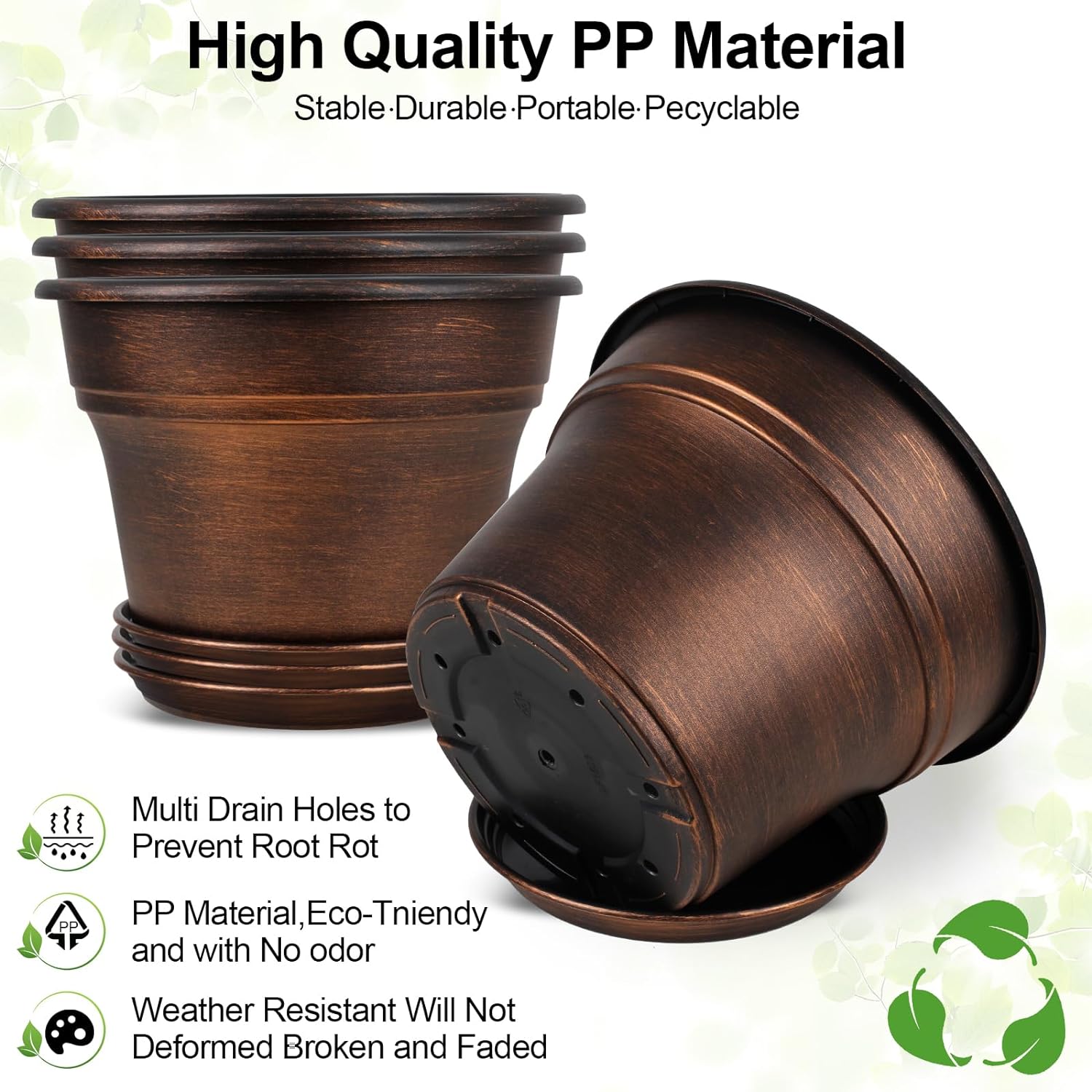 - 【TRADITIONAL DESIGN】Plastic planters for indoor plants with trays are designed in in dark gold colors & a classic look, which allow this pot to fit into any indoor & outdoor setting. With these golded flower pots, it could adds fresh, decorative flair to your home. Decorate your windowsill, desktop, shelf, bedroom, living room, kitchen, garden, office with our 16 inch large plastic plant pot.