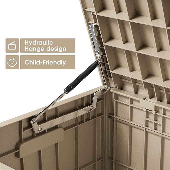 - Storage space up to 82 gallons: This outdoor storage box is perfect for storing garden tools, outdoor supplies, pool gear and other outdoor items to keep your patio, pool, and garden looking neat, clean, and organized
