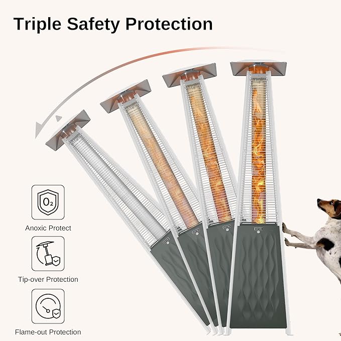 - Product 1 - ๐ง๐ฟ๐ถ๐ฝ๐น๐ฒ ๐ฆ๐ฎ๐ณ๐ฒ๐๐ ๐ฃ๐ฟ๐ผ๐๐ฒ๐ฐ๐๐ถ๐ผ๐ป : EAST OAK propane patio heater offers a triple safety protection system to ensure your well-being. Designed with anti-tip protection, it will automatically shut off the flame when tilted more than 45 degrees. If the flame is accidentally extinguished, the gas supply will shut off immediately.