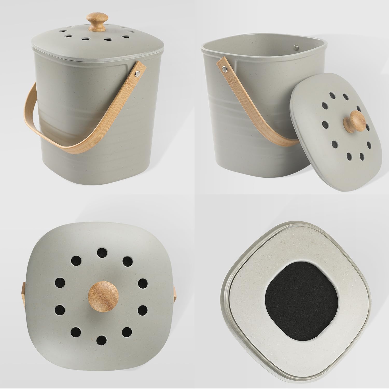 Compost Bin Kitchen, LALASTAR Countertop Compost Bin with Lid, Made of Sustainable Bamboo Fiber, Odorless Indoor Compost Bucket, 1 Gallon, Grey, Square