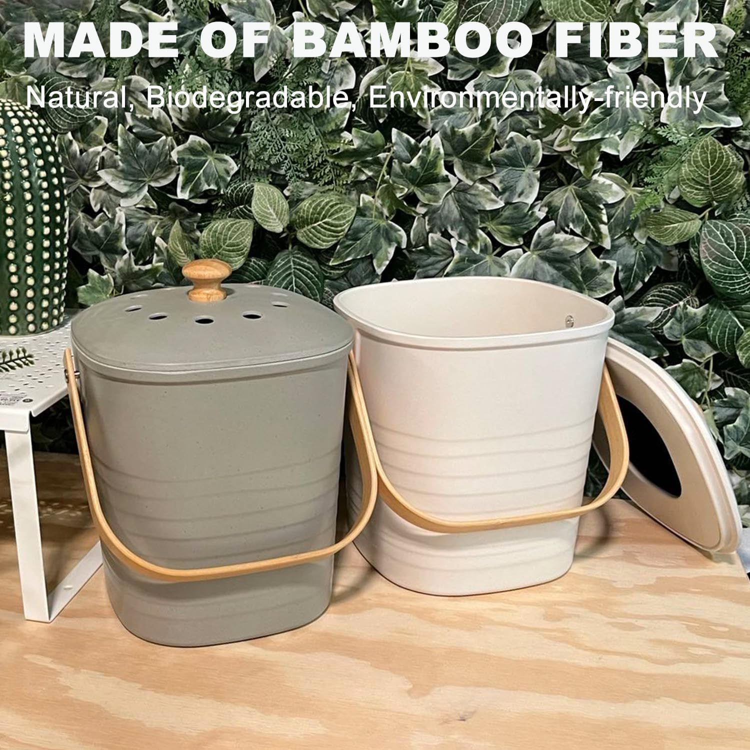 - All Natural: Made from earth-friendly recycled materials including Bamboo Fiber, Corn Starch, the kitchen compost bin countertop in itself is biodegradable.