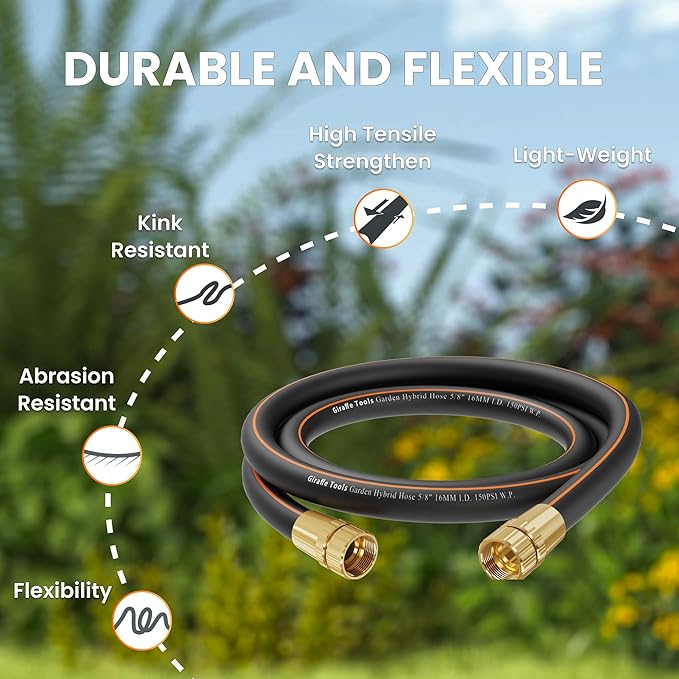 - Premium Quality: Combined with 2 layers of lightweight hybrid and 1 layer of bursting resistant polyester mesh, Giraffe Tools hose has been tested rigorously to confirm burst strength, kink and abrasion resistance, leakproof seal, and connection strength. It can be used as hose reel leader hose.