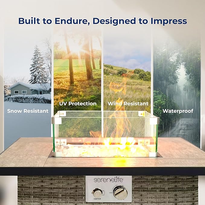 - FIRE PIT AND TABLE IN 1: This fire table not only provides heat to keep you warm during winter it also doubles as a table in summer. Creates an elegant atmosphere in the garden, terrace, balcony, or backyard. Comes w/ a box of clear glass rocks