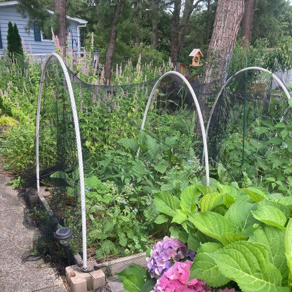 - 【Easy to install and remove】: Our strong woven bird netting easy unfold, won't tear and tangled, with a load-bearing capacity exceeding 100 pounds. Simply cover your plants, fruit trees, vegetables, grow tunnels, or garden beds with it, securing the bird nets with stones or stakes. It can also be used as deer netting, fruit tree netting, bird netting for chicken coop, strawberry netting, pond netting.