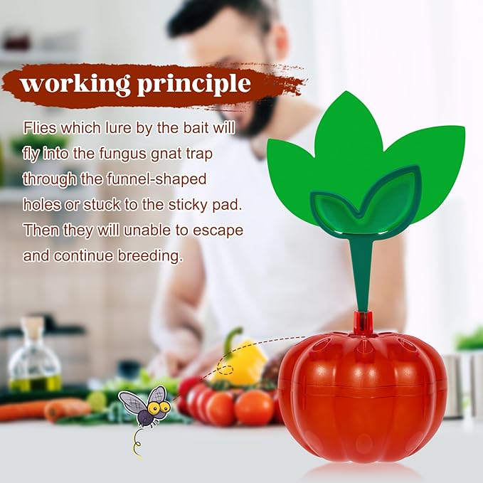 - Package: 4 pack fruit fly traps for indoors, 2 pack fly bait and 16 pack sticky pads. Apple shaped trap blends in with decoration.