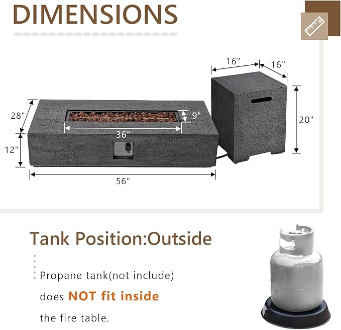 - 🔥【Spacial Economy】: Large enough coffee table surface to set your coffee or nightcap. The entire piece can easily be picked up from the side handles by two people. It fits a 20lb propane tank which should be put outside the fire table.