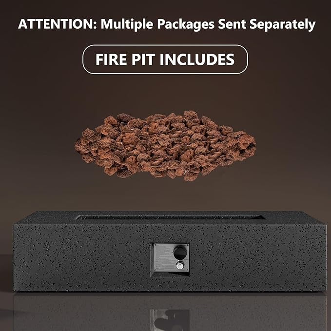 - 🔥【Sundown, Fun Up】: When the sun sets and your outdoor paradise begins to cool a bit, no need to go inside. Light the fire pit table and warm up the patio night! You can even serve an intimate dinner for four right on the spacious ledge surrounding the warm glowing lava rocks. What could be cozier? Clean burning propane flame provides soothing warmth, gentle lighting and a centerpiece for many outdoor or backyard evenings worth remembering.