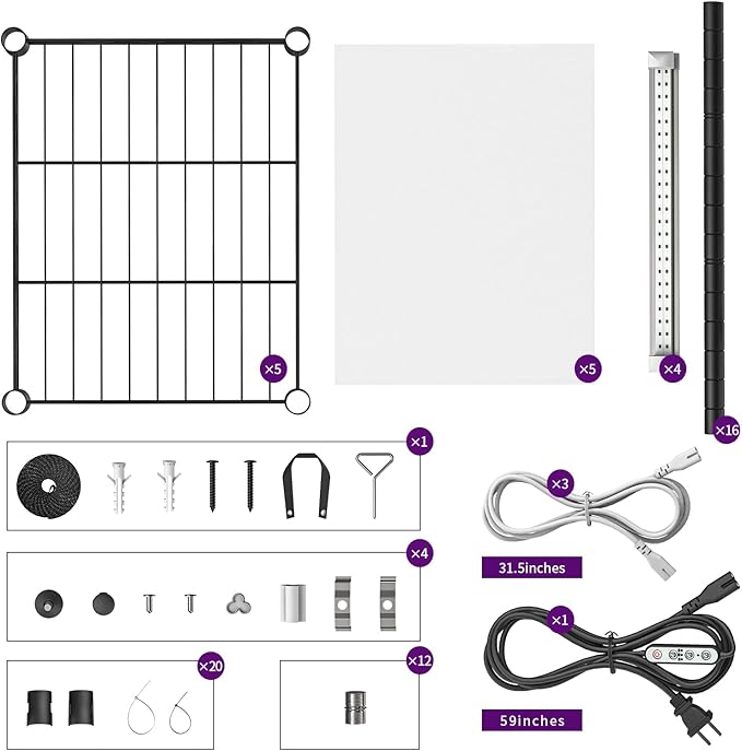- Grow shelves and plant Light: 15.7"L x 11.8"W x 59.6"H 5-tier plant cabinet and 4-pack 40W (4 x 10W) plant light . Suitable for growing or displaying your indoor plants. It's a professional full spectrum grow lights for indoor plants, seed starting, hydroponics, succulents, flowers, Veg & More