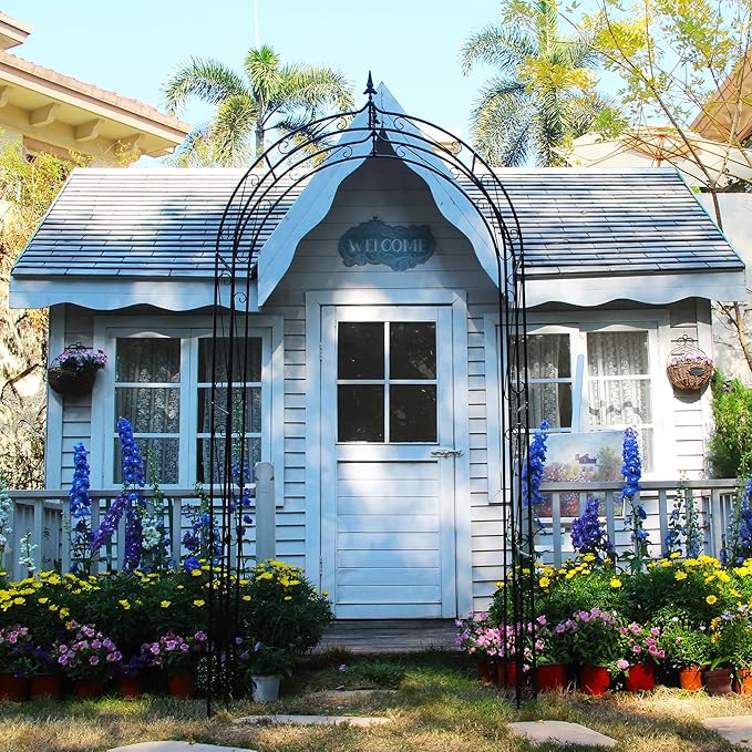 - 【ELEGANT CRAFTSMANSHIP】Every inch of our garden arch boasts exquisite workmanship, ensuring a smooth and burr-free surface. The graceful design and vintage appearance of this arch add a touch of sophistication, creating a beautiful gateway to your garden that's captivating even without additional adornments.
