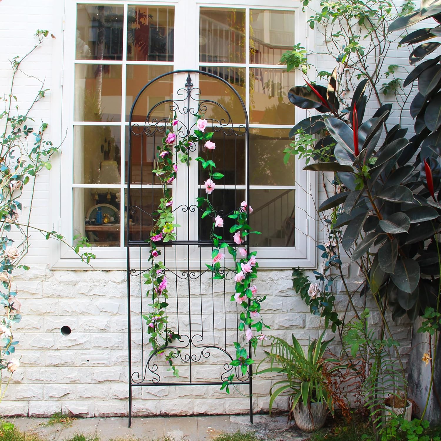 - Enduring and Weather-Resistant: Crafted from rustproof, high-quality iron with a sleek black powder-coated finish, this plant trellis offers sturdy support for a variety of climbing plants and vines. With dimensions of 86.6" H x 29.5" W and a net weight of 14.3 LB, each package includes a single garden trellis.