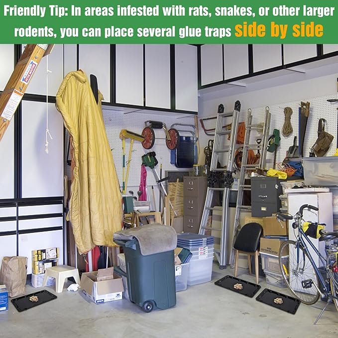 - Easy to Use: Pre-baited! Simply place two sticky mouse trap apart in areas frequented by rats, snakes, rodents. Glue traps for mice and rats is light, rat traps indoor is recommended to put in the corner of the wall and other places where mice are not easy to escape.