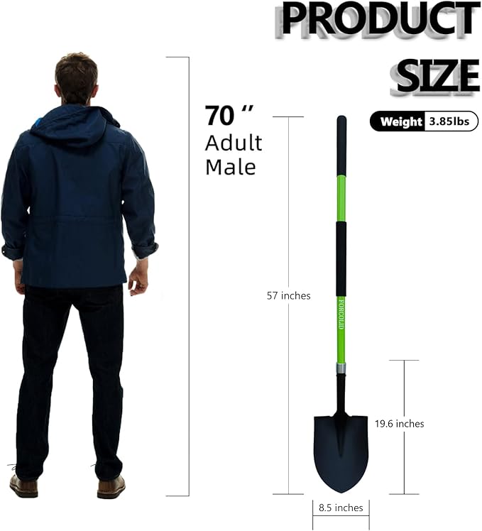 - Dimension: The 57 inches shovel for digging is suitable for adults, the right size can reduce the pressure on the waist, and long-time users will not feel tired.