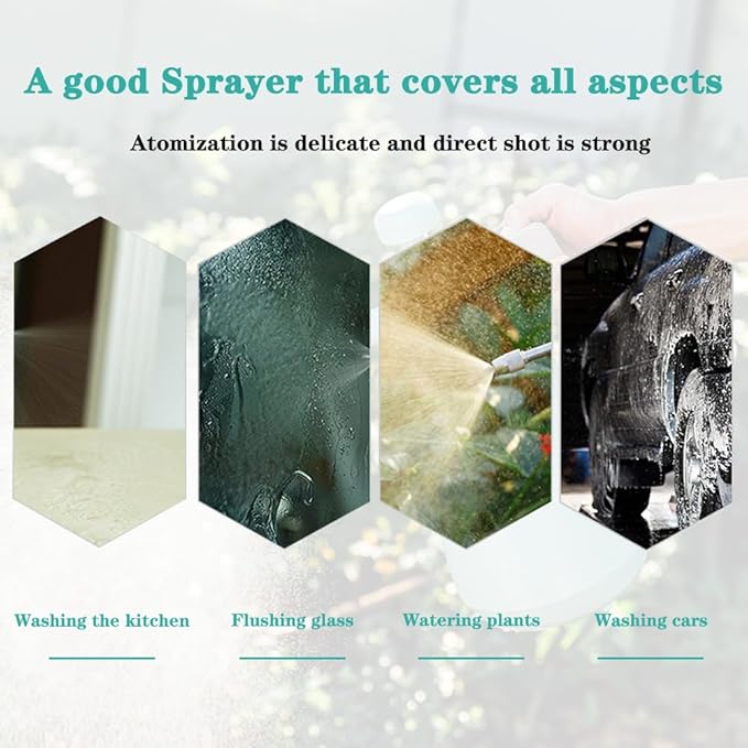 - 【Size】The sprayer is 2L/0.5Gallon/68oz Capacity. The height is 33CM/13 Inch, the bottom width is 14.5CM/5.7 Inch, and the weight is 436g/0.96Ib.(All dimensions are manually measured and may be subject to error)