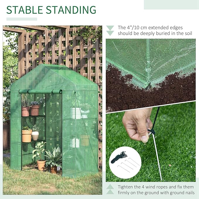 - Outdoor Ready: Our small walk-in green house is constructed with a strong powder-coated steel frame for stability. This gives our greenhouse the strength of steel without worrying about water causing issues.