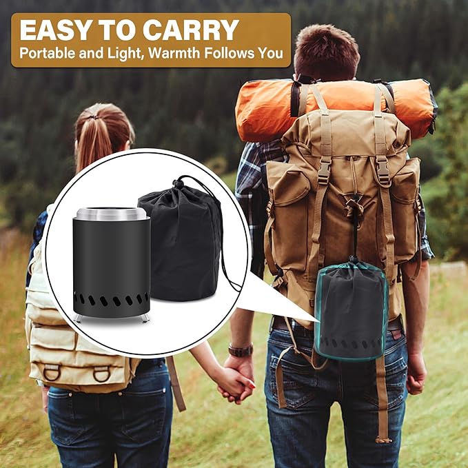 HGD Small Tabletop Fire Pit, Smokeless Table Top Firepit Outdoor, Portable Mini Stove with Carry Bag for Camping Backyard Patio Garden Picnic, Fueled by Pellets or Wood, Stainless Steel, Black