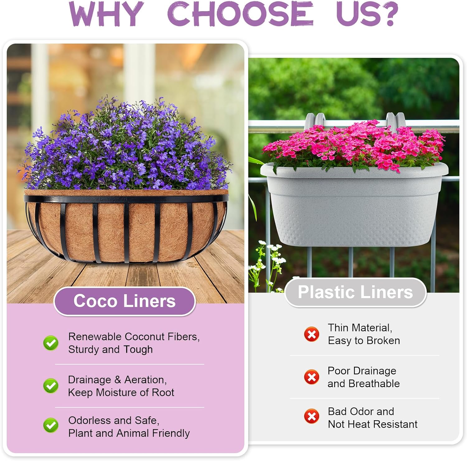 - Easy to Maintain and Use: Soft flexible rectangle coconut liner can foldable and easy to cut, don't worry about size deviation leading to idleness. Soak the liner in water for a while before placing it in the planter box for easier molding, then put nutrient soil in it and you can plant easily