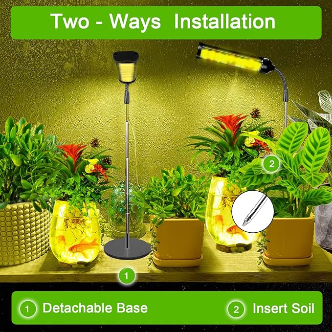 - Easy to Install - With flexible Gooseneck & metal Base ,Height Adjustable Min 7-Max 23 Inch ,the plant light allows you to place the growth light in any desktop or countertop without fall to provide the best lighting angle for your plants,meet the cover around the plant.Powered by USB or AC Power Plug,