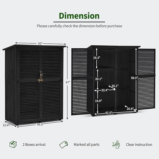 MCombo Outdoor Storage Cabinet, Wooden Storage Shed with Latch, Outside Garden Tool Shed with 2 Doors for Patio Yard Lawn, 1900 (Black, Large)