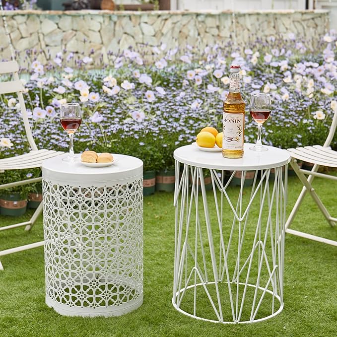 Y&M Set of 3 Heavy-Duty Round End Table, Side Table, Coffee Table for Indoor Multifunctional Use, Outdoor Decorative Garden Stool Plant Stand-White