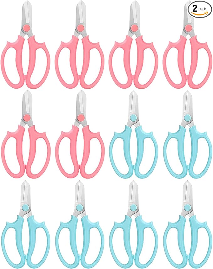 Flower Scissors - Stainless Steel Floral Scissors, Florist Cutters for Stems, Garden Plant Shears for Fresh Flowers (Blue, Pink) (12 PCS)