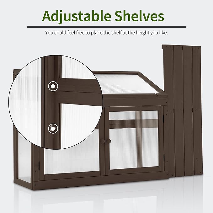 - Openable Roof: The bolt on the side can be used to secure the roof in the open position, while the size of the vents can be adjusted by placing the screws in different positions along the rods, it setup ensures a healthy ventilation system for your plants, adapting to various weather conditions