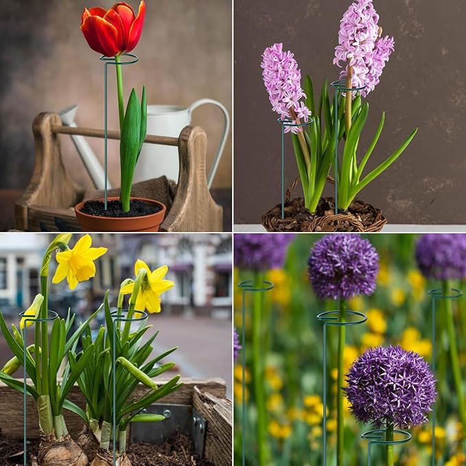 - Product Dimensions: Plant Support Stakes Are 16 inch Long, inner Diameter Of The Top Loop is 2.5 inch, Plant Twist Ties Are 7.8 inch Long, Plant Support Rings For Plant Flowers, Amaryllis, Rose, Orchid, Peony, Lily, Tomatoes, Vegetable.