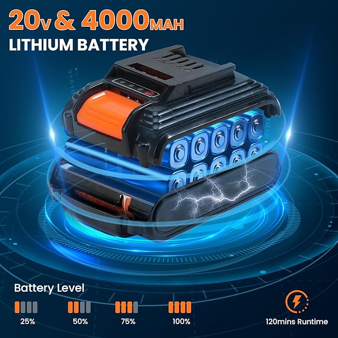 - 【Universal 20V Battery Ecosystem】The 4.0Ah rechargeable battery powers all 20V cordless tools (compatible with 100+ devices). Tip: Search “4.0Ah Battery Part No. LI-100M-4.0TP” for replacements.