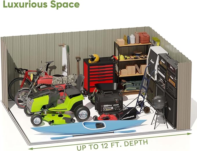 - Durable Metal Construction: Built with robust and thicker metal panels, this shed offers unparalleled strength and sturdiness, ensuring long-term reliability and protection for your belongings.