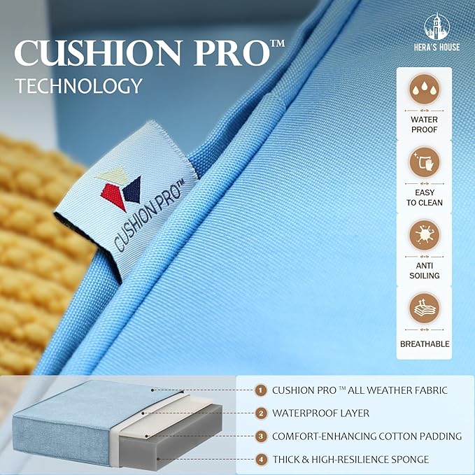 - 【E-COATING & POWDER-COATING TECHNIQUE】ALL the HERA'S HOUSE metal frame of conversation sets are processed by high-performance E-COATING and POWDER-COATING technique which provides extended protection against rust, scratches, rain, and UV harm. All weather resistant, anti-rust, easy to clean, no special care needed.