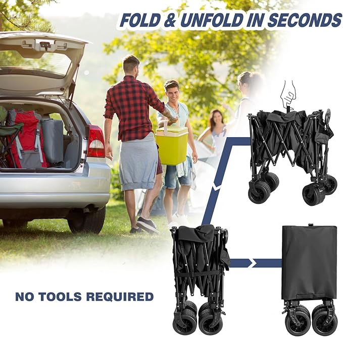 - Compact and Easy Storage:Foldable Design.The cart can be quickly folded and stored in its dustproof bag when not in use. Its ability to stand upright in storage saves space in your vehicle or tent, keeping your campsite organized and clutter-free.Its thoughtful construction and attention to detail make it an indispensable tool for anyone looking to simplify their outdoor tasks and enhance their efficiency.